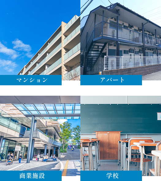 当社では主に、共同住宅や店舗・施設、オフィス・ビルなどで内装工事やリフォームを行っております。