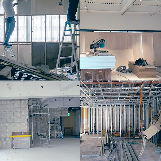 さまざまな物件で内装工事を行いますので、一つひとつの仕事の規模は状況で異なります。しかし規模関わらず、空間の『仕上げ』が私たちの手にかかっているので、責任を持って施工を進めております。